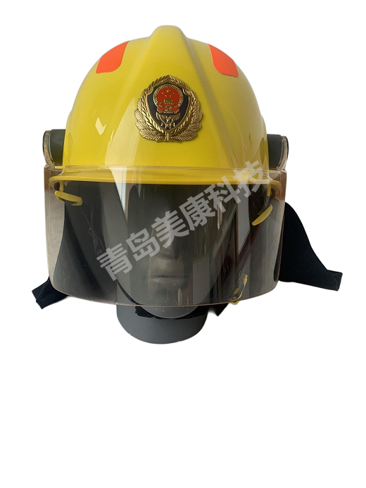 本产品为外翻半盔式头盔,四级减震结构设计由帽壳、冲击力吸收垫、缓冲层、网状舒适层、帽箍、下颏带、浅色透明面罩、可拆卸式披肩等部件组成,设调节纽,调节方便的下颌带,采用橡胶内嵌金属包边;配备耐高温阻燃支架,与头盔配套使用,方便消防员佩戴“佩戴式防爆照明灯”等装备,并提供配件一套,粘贴式帽徽。颜色:黄色。头盔头围可调范围大。