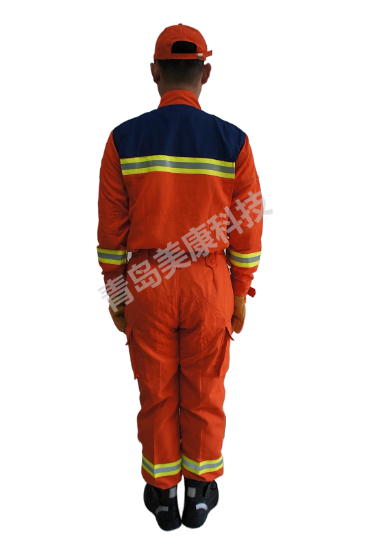 9.反光标志带性能:逆反射系数、热稳定性能、耐洗涤性能、高低温性能满足XF 633《消防员抢险救援防护服装》标准要求,反光标志带经过25次洗涤后进行阻燃性能试验,损毁长度不大于100mm,续燃时间不大于2s,无熔融、滴落现象,且反光标志带反面基布具有生产厂家印制的防伪标识。